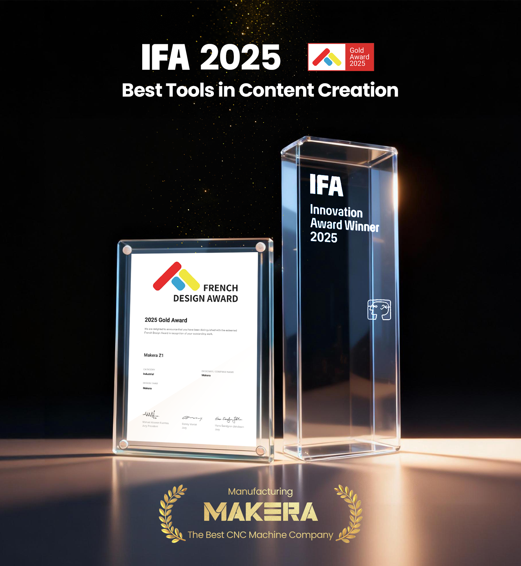 Z1이 IFA 혁신 어워드에서 '콘텐츠 제작 부문 최고상'을 수상했습니다. - 2025년 10월, 보급형 스마트 CNC 기계인 Z1의 출시로 킥스타터 모금액 1024만달러를 기록하는 성과를 올렸습니다.