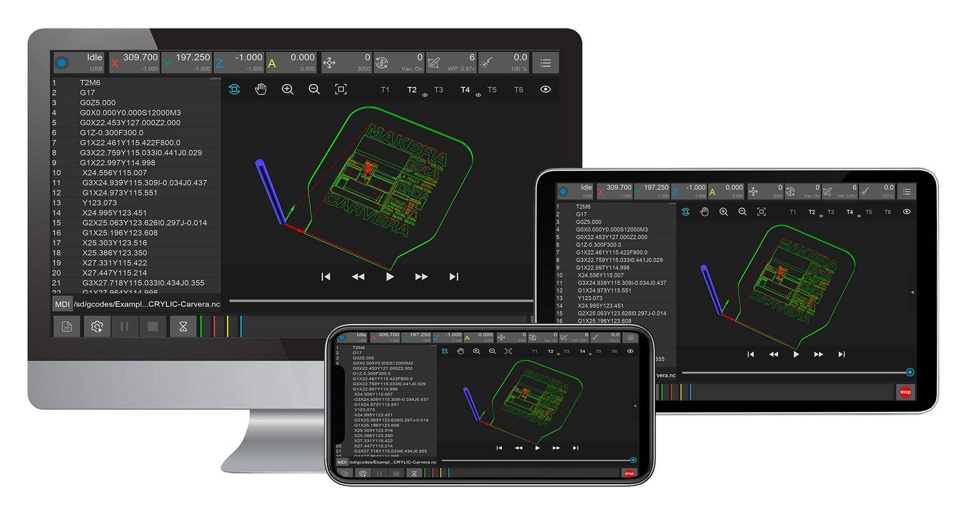 The Controller software fully supports your Carvera or Carvera Air machine and can run across Windows, Mac, Android, Linux, and iOS, either wired or remotely.