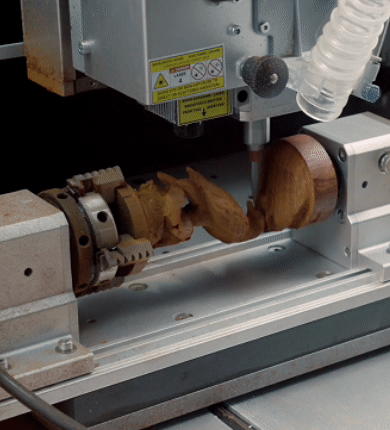 One more axis, much more possibilities, with the 4th axis module, you can machine cylindrical items, double sided objects, and 3D shapes. Carvera provides you with truly 4th axis simultaneous machining, you can make real 3D stereo models which can only be made by 3D.