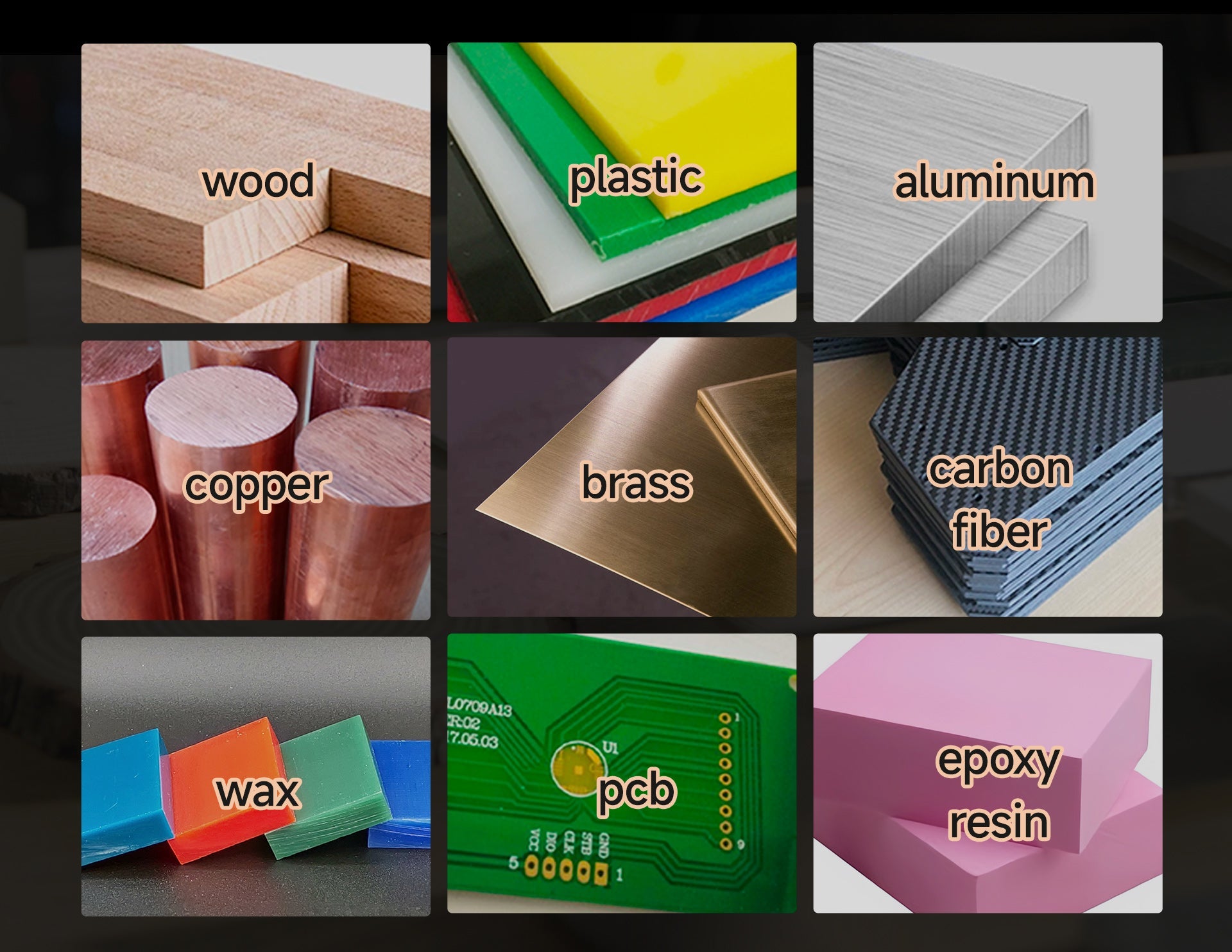 Laser engrave materialWood, plastic, fabric, leather, cardboard, etc.