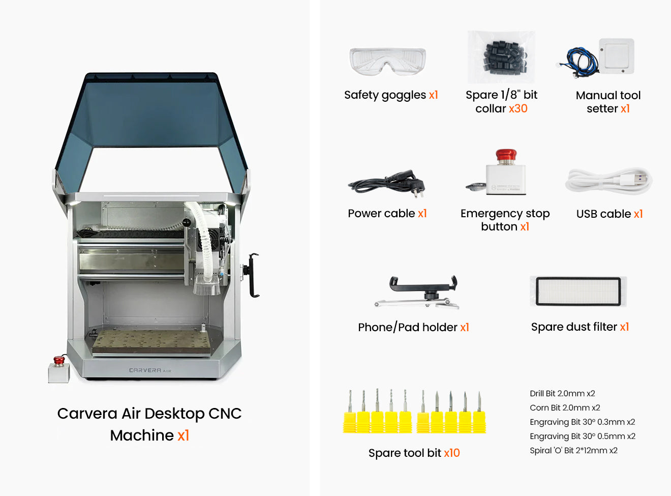 - Unpacking Carvera: Ready to dive in? Check out our Unpack document to see everything your new CNC machine includes and how to set it up effortlessly.