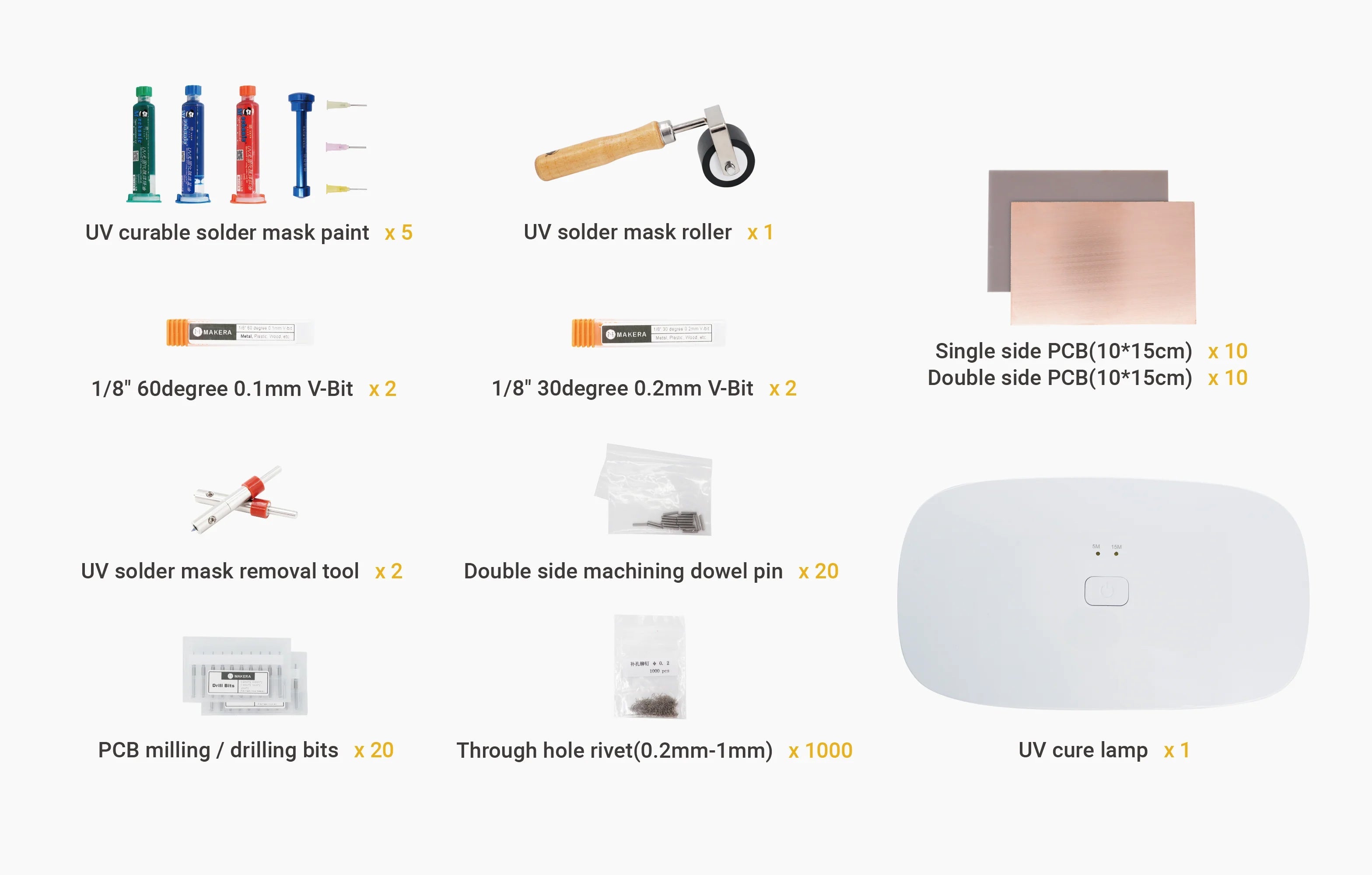 Making double-sided PCBs is challenging, we provide an all-in-one PCB package that helps you make them with ease, and will provide step-by-step tutorials for beginners.